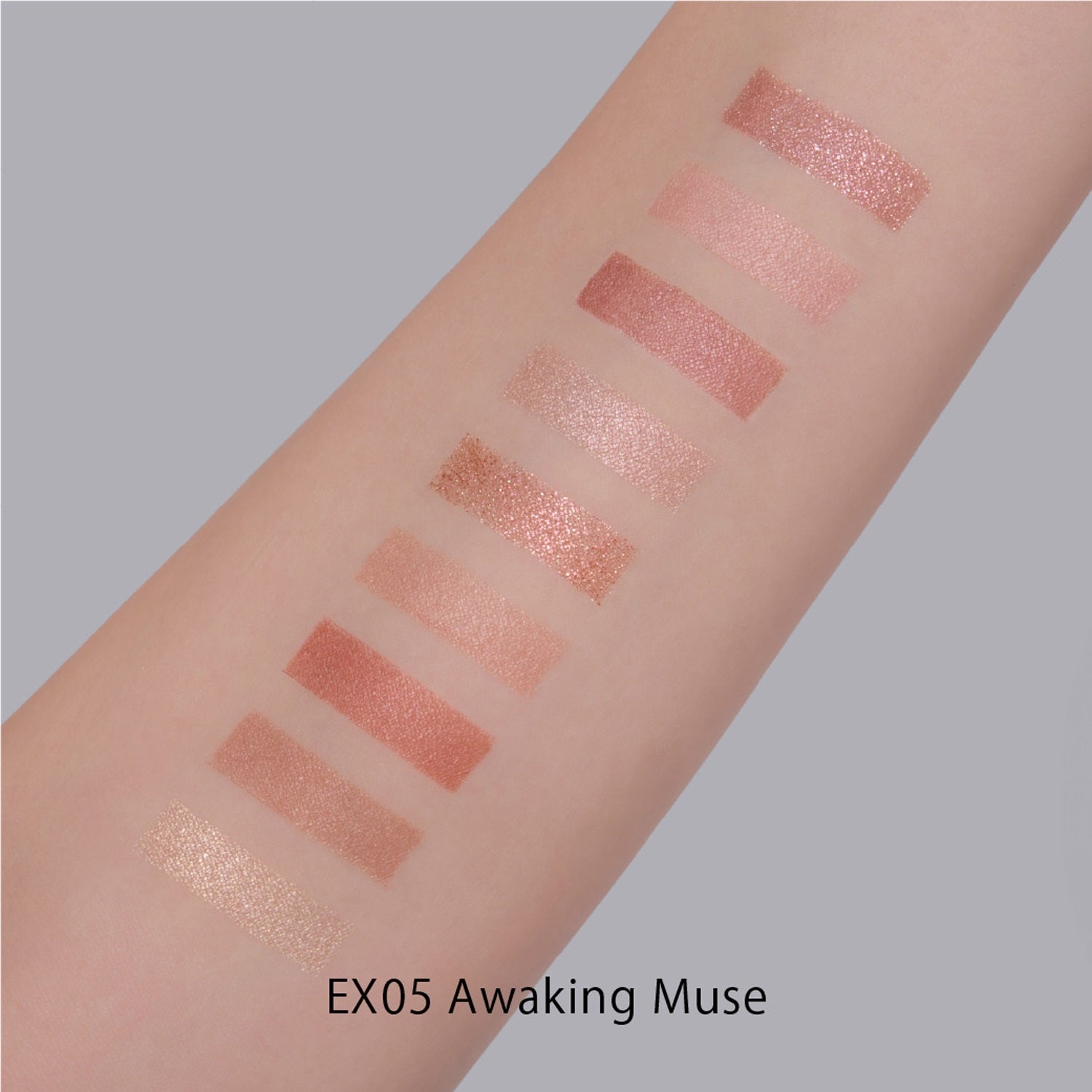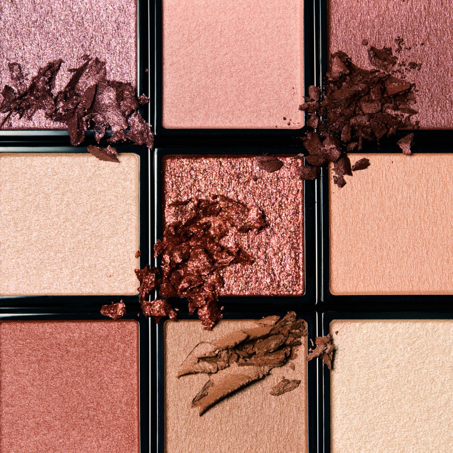 Built on skin-synchronizing beiges and browns, the palette blends matte, satin, and glitter textures, creating layered depth and a refined yet sensual gaze.
