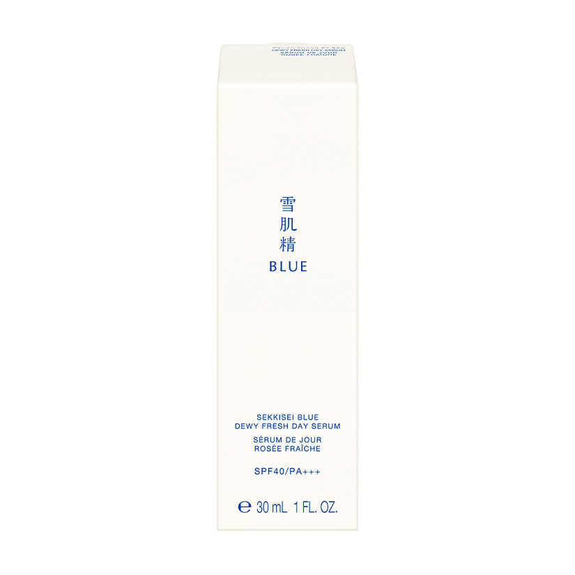 Awaken your skin with overflowing freshness and luminous vitality. SEKKISEI BLUE Dewy Fresh Day Serum is a multi-functional daytime serum with SPF protection, developed with an Eastern botanical philosophy. It not only shields skin from UV rays but also addresses daytime dullness, dryness, environmental stress, and loss of firmness.